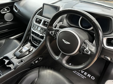 Delivered new in March 2018, this ASTON MARTIN DB11 52L V12 Coupe is specified in the Special Colour of Hammerhead Silver metallic paint with a Gloss Black roof and the Contemporary Caithness Leather interior in Obsidian Black with Celestial Perforation in a Silver Stitch.