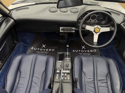 Further work included replacement of the original Carello headlamps (not the cheap replica versions), rejuvenating the targa roof section with Ferrari-correct vinyl, all while retaining the original Ferrari-labelled windscreen.