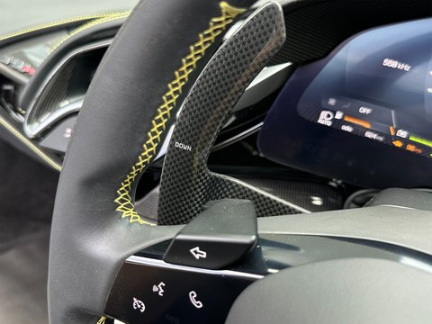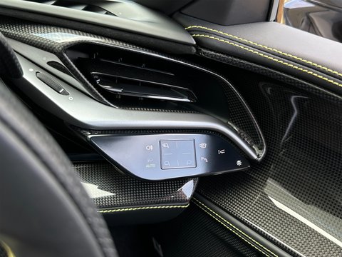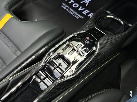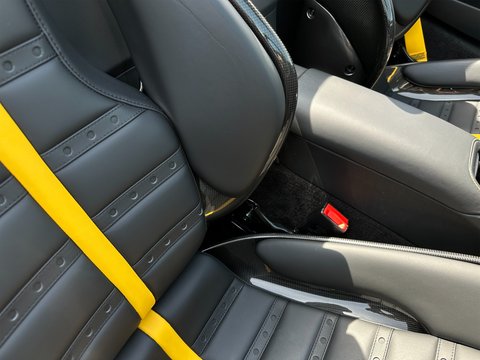 The stunning interior features Daytona Racing Seats finished in Nero accented with Giallo Yellow Stripes and Stitching, Cavallino Stitched Headrests and Carbon galore.