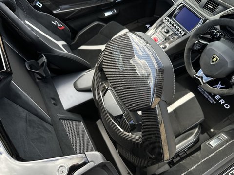 Move to the spectacular Alcantara-clothed interior presented in Nero Cosmos (Black) with contrasting Grigio Cronus (Grey) stitching, and you’ll be greeted by the Full Interior Carbon Fibre Package, Carbon Skin Package, Multifunction Steering Wheel in Alcantara, Carbon Footplate, Cross Stitching and the Coloured Interior SVJ logo