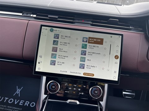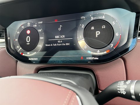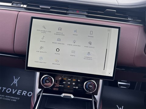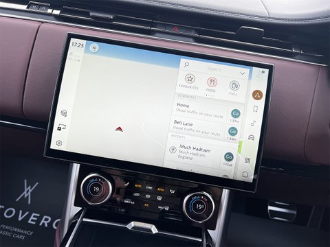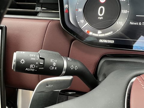 This nearly-new and truly stunning 2023 Range Rover 3.0 P400 MHEV Autobiography is finished in the Premium metallic paint of Charente Grey with Shadow Exterior Pack. Move to the interior and you're treated to the luxurious Perlino Perforated Semi-Aniline leather seats in Deep Garnet, and an SV Bespoke wood and leather steering wheel.