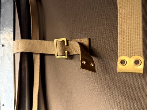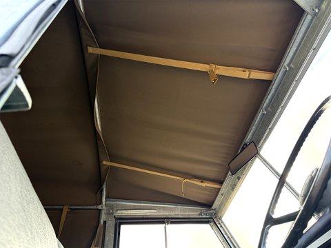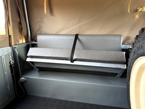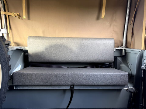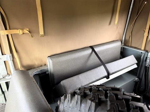 The new canvas tilt & sticks gives all weather options, whilst the new limestone painted wheels have been shod with new OEM 600x16 tyres giving it the original look as intended.