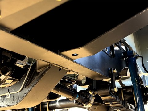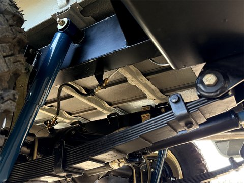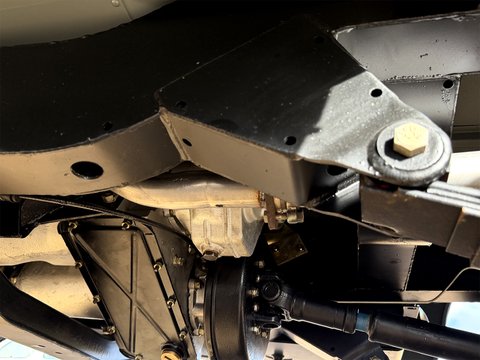 Every Suspension and braking component has been stripped, blasted, powdercoated/re-plated, then reassembled with new OEM parts where required, including new bearings, seals & swivels, and leaf springs with girling shocks added. The axles still bear the chassis number on the casing. New OEM propshafts attach to rebuilt front & rear differentials. The Steering Box is rebuilt with new steering relay and ball joints. The original matching engine has been rebuilt with new genuine pistons, rings, bearings and oem gasket set, and includes a new Weber carburettor, new Radiator (retaining the original surrounds and guards), new Hoses, Alternator, OEM exhaust, Battery, and Starter Motor.