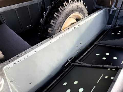 The body was taken apart, soda blasted, assessed, and each panel individually painted inside and out in the original colour of Mid Grey, before reassembly, retaining all original panels bar replacing the Doors and Outer Front Wing Skins for new. The original cappings and galvanized parts were re-galvanized, with new Glass, Seals, and OEM lights added.
