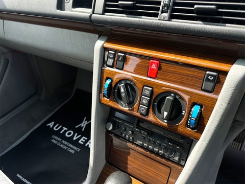 This particular 1989 W124 was delivered new by Mercedes Colindale, London to Its one and only owner, and is finished in Blue Black Metallic with grey cloth seats. The car is highly specified with air-conditioning, central locking, electric tilt/ slide sunroof, automatic transmission, headrests in rear, folding armrest front, electric windows front and rear, heat insulating glass and headlamp wash/ wipe. The original factory supplied Blaupunkt stereo is still present and working.
