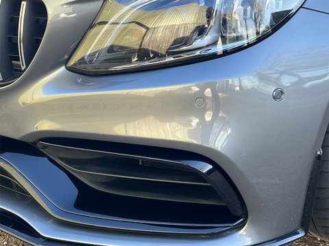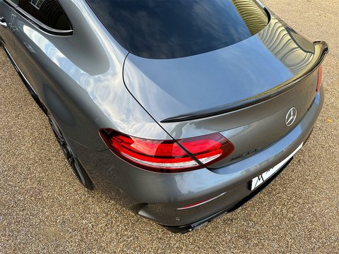 This late 2019 Mercedes C63s Coupe Premium Plus is finished in metallic Selenite Grey with the Gloss Black Exterior Package, AMG Aerodynamic Package and Matt Black 19/20" AMG Forged Cross-Spoke Alloys over Red Brake Calipers.