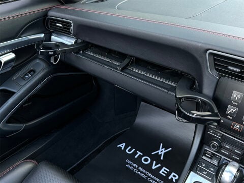 Factory options include the glorious Switchable Sports Exhaust System, Front Axle Lifting System, Rear Axle Steer, 14-way Electric Sports Seats, Red Stitching, PASM Sports Suspension, diamond-cut Carrera S Wheels, BOSE Surround Sound, Cruise Control, GT Sports Steering Wheel, Porsche Dynamic Light System Plus (PDLS), Park Assist Front and Rear Metallic Paint, Electric Wind Deflector, Elecric Folding mirrors, Automatically Dimming Interior and Exterior Mirrors with Integrated Rain Sensor, Windscreen with top-tint, VTS Tracker.
