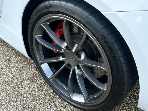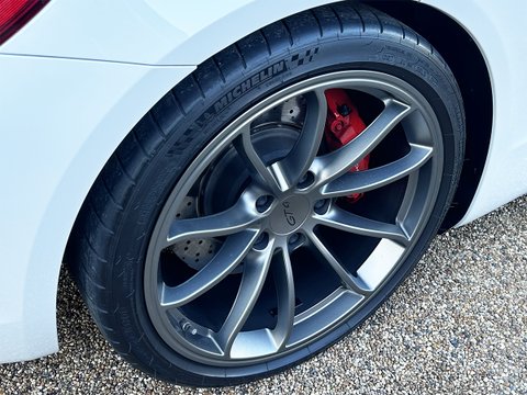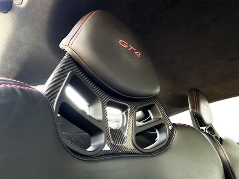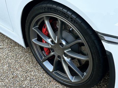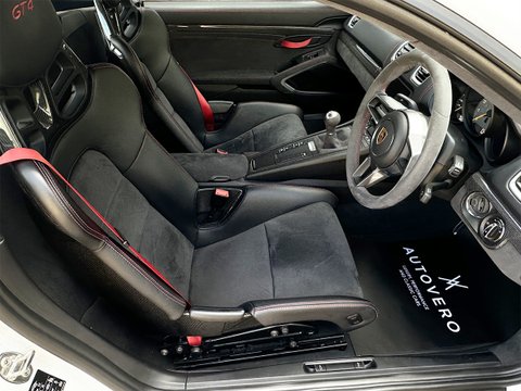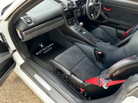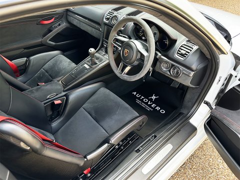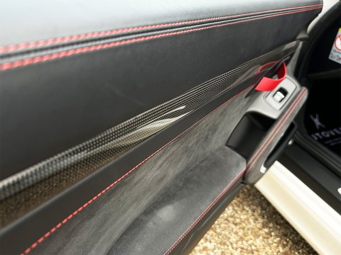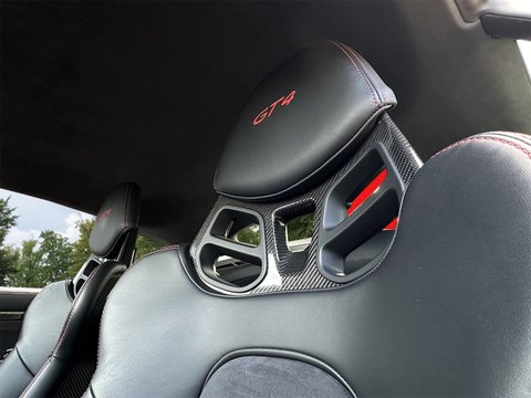 Specified in the gorgeous combination of Carrera White contrasting with a black Alcantara interior, Carbon Fibre Porsche 918 Bucket Seats, extended leather, contrast red stitching, red seat belts and GT4 embroidered headrests.